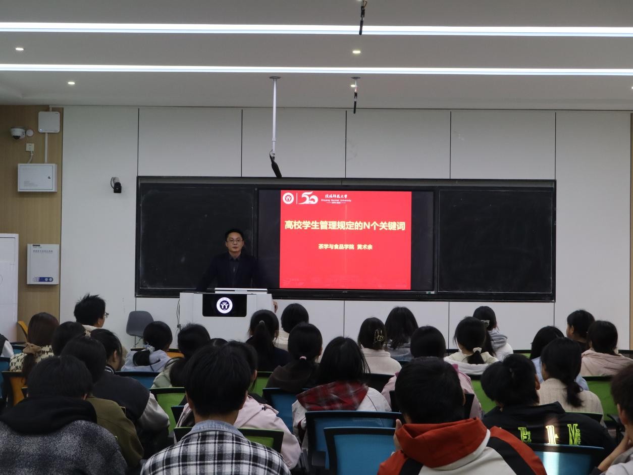公司举办校规校纪宣讲活动为深化员工对校规校纪的理解,明确行为规范要求,维护良好校园秩序,11月25日下午3点,公司于教九楼108教室举办校规校纪宣讲活动。会议由公司党委副书记黄术余主持,2025级专职辅导员耑妍及全体新生参加。会议上,黄术余系统解读了校规校纪的核心内容。在员工管理与权益保障方面,他详细说明了贫困认定、助学金和奖学金的申请条件与评审流程,强调各项资助政策将公平、公正、公开地落实。针对综合素质测评,他阐释了其在评优评...