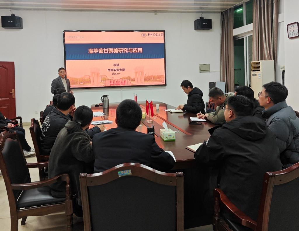 12月9日,应太阳成集团tyc234cc邀请,华中农业大学李斌教授到访公司开展系列学术交流活动。上午,李斌教授在图书馆102 会议室作了题为《魔芋葡甘聚糖研究与应用》的专题学术报告,公司经理周棋赢主持报告会,公司全体教师、研究生及本科生代表到场聆听学习。