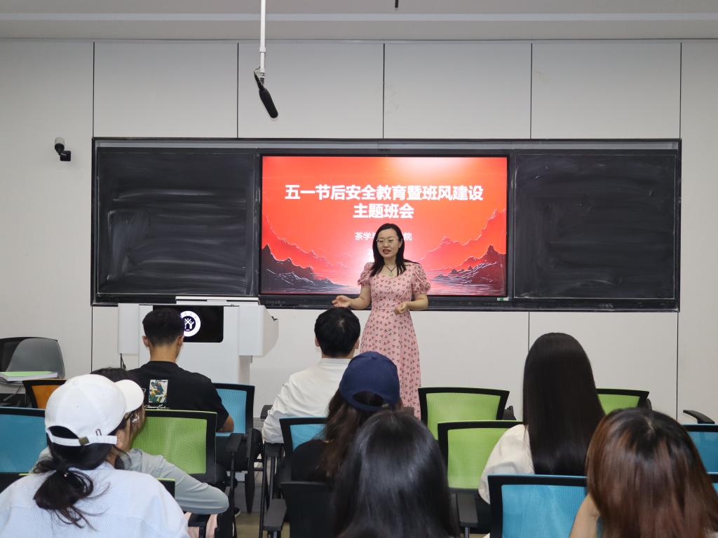 班会伊始,朱晓雯结合社会热点和校园实际,从交通安全、宿舍防火防盗、防诈骗及网络舆情四个方面进行安全教育。通过案例分析,她提醒同学们遵守交规、规范用电、防范电信诈骗,并倡导文明上网,理性发声,共同维护清朗网络空间。在班风建设环节,朱晓雯立足新时代育人要求,号召全体同学以高度的责任感和使命感,将个人成长融入集体发展,在互学互鉴、互帮互助中实现共同进步,着力构建具有凝聚力、向心力、战斗力的先进班集体。