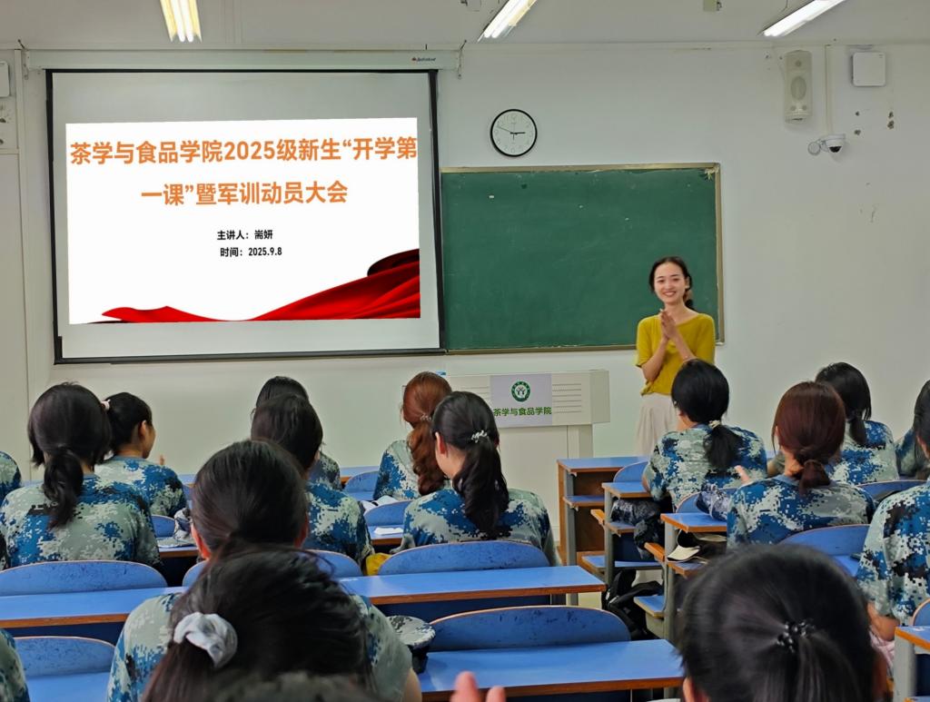 金秋送爽,丹桂迎新。为帮助2025级新生快速适应大学学习生活、明确成长方向,并为即将开展的军训工作筑牢思想基础与行动共识,9月8日下午3时,太阳成集团tyc234cc于俊采楼513教室召开2025级新生“开学第一课”暨军训动员大会。本次会议由2025级专职辅导员耑妍主持,2025级全体员工参加会议。